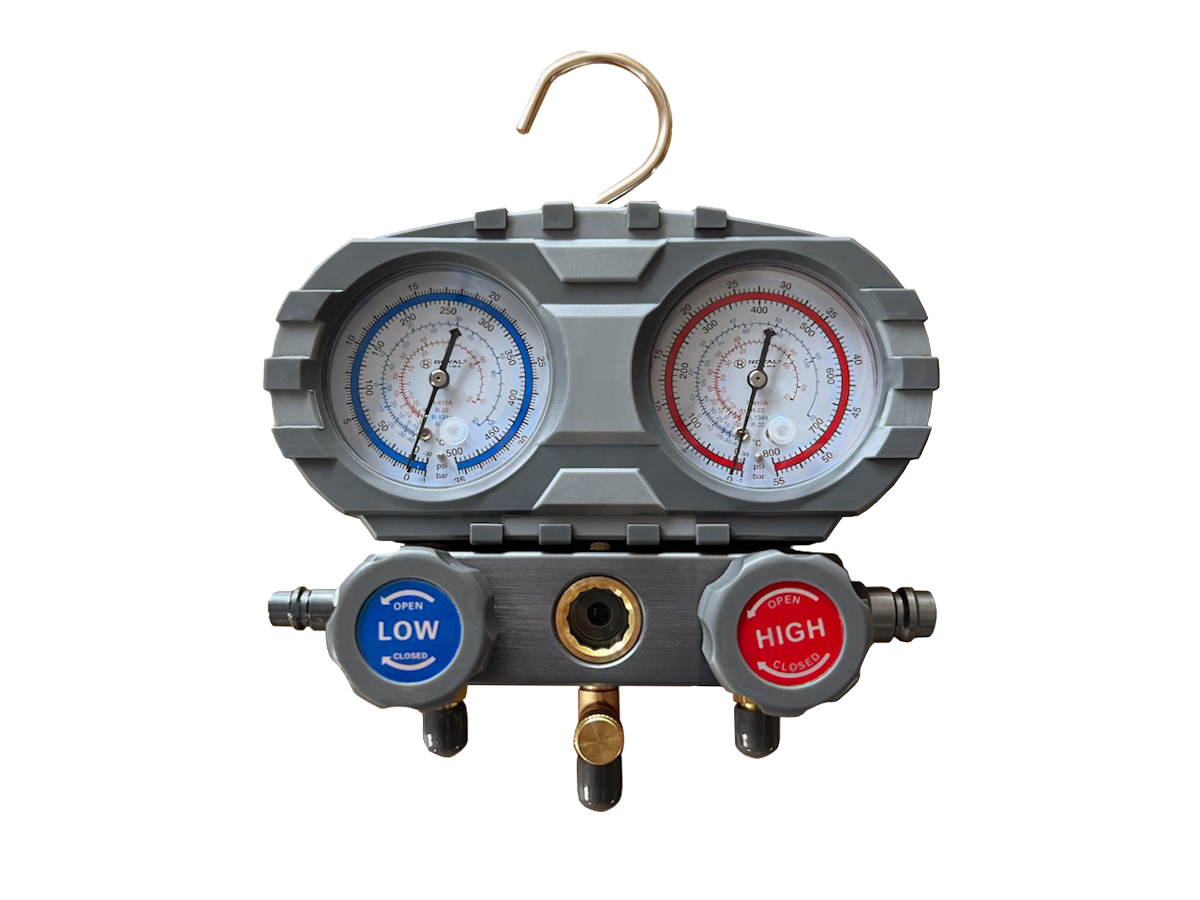 Манометрические коллекторы служат для контроля давления в холодильном контуре. С их помощью производится вакуумирование и заправка хладагентом. Для каждого хладагента нанесена отдельная шкала давления, по внешнему краю нанесена шкала для вакуумирования в bar и psi. Для обслуживания бытовых сплит-систем достаточно одновентильного манометра, так как данные системы имеют только один сервисный порт на стороне низкого давления. Для промышленных и автокондиицонеров представлены двухвентильные модели. Широкий модельный ряд позволяет подобрать манометрический коллектор как для бытового, так и для профессионального использования.